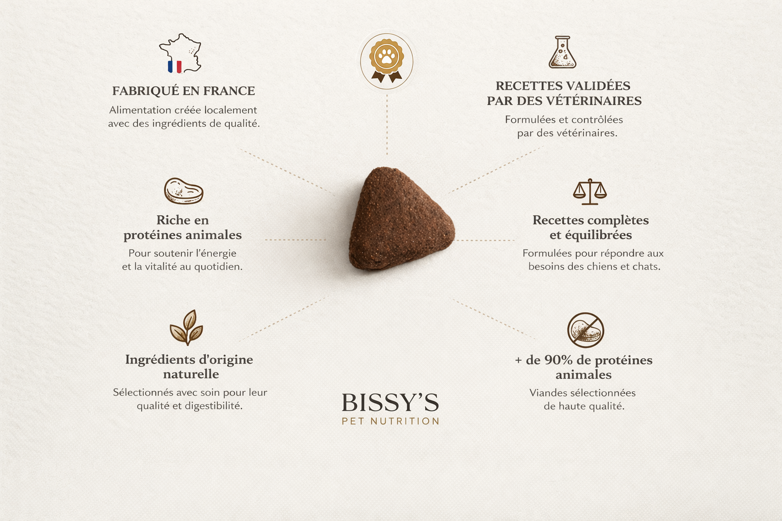 Chez Bissy’s, nous avons fait le choix de nous consacrer à une alimentation de qualité, pensée pour les accompagner chaque jour.